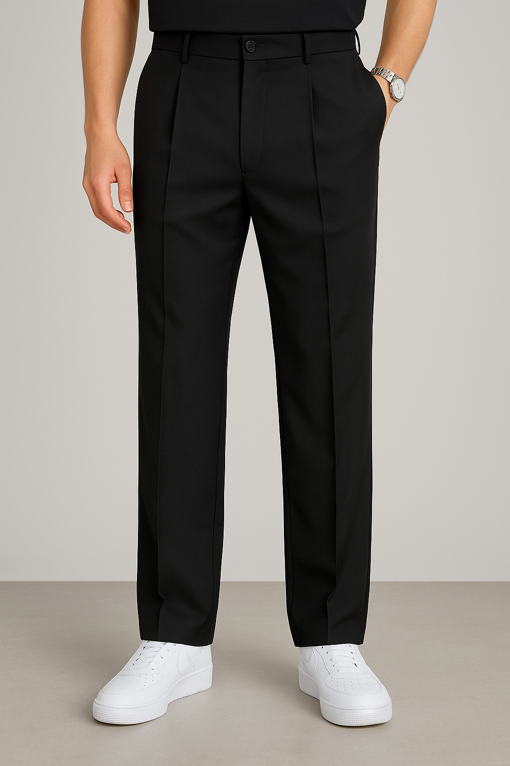 • Vielseitiges Design: Die Bundfalten und die elegante Farbe machen sie ideal für Freizeit- und Business-Looks.